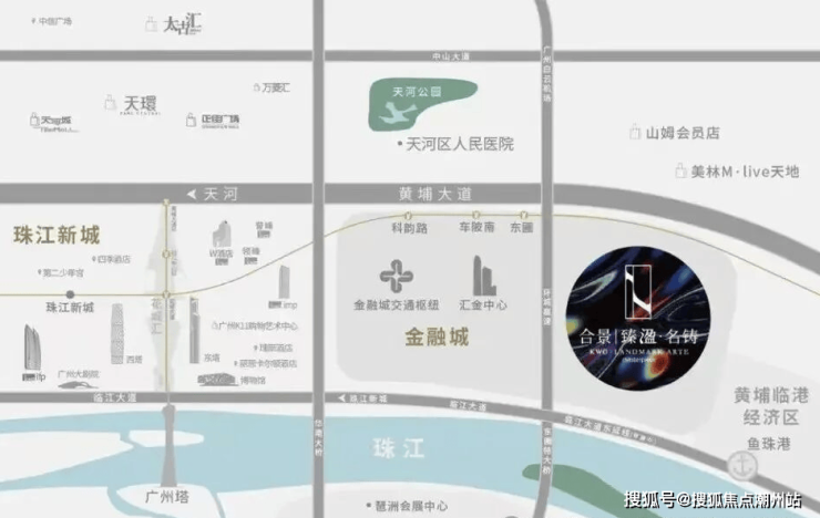 世界级交通枢纽,临江大道直达珠城:10分钟珠江新城,15分钟琶洲,金融城TOD(全国最大地下空间),15分钟南站,20分钟白云机场。