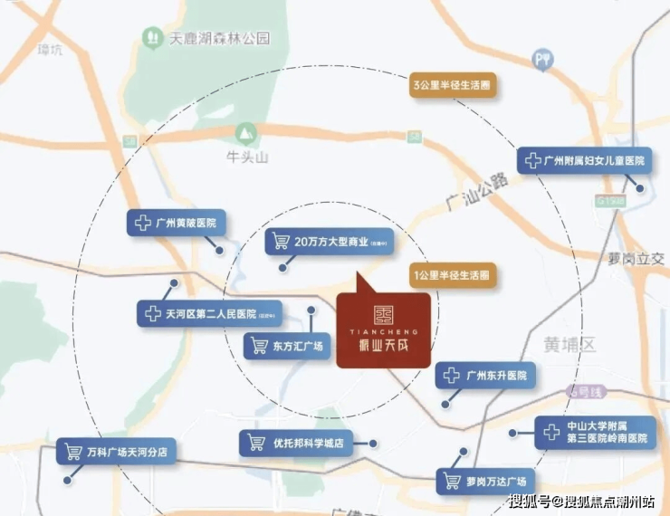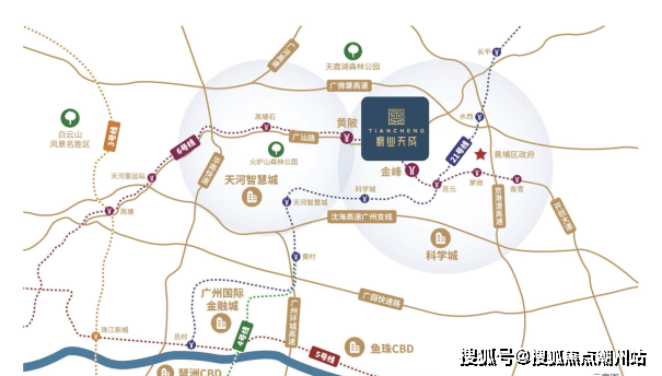 一步天河 半小时速度圈 。城市干道:10分钟车程,到天河高塘石,30分钟车程,到珠江新城;跨城高速:10分钟车程,到广佛肇高速入口,畅达大湾区;城市轨交:20分钟步行,可达地铁6号线黄陂站、金峰站双站点,2站可达苏元换乘21号线,6站天河客运站。