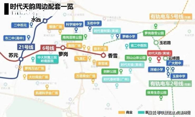 小区目前距离最近的地铁香雪站约3.8公里,步行的话不现实,如果你平时上下班通勤需要地铁的话,且想买这个楼盘,可以坐有轨电车2号线去往香雪,或者骑小电驴。小区门口就是黄埔有轨电车2号线开源大道东站,天韵业主从家门口出发,5站就能抵达香雪,接驳6号线,无需环线可直达天河、海珠、越秀等地。此外规划中的6号线东延段和23号线,也会在附近的植树公园站交汇。