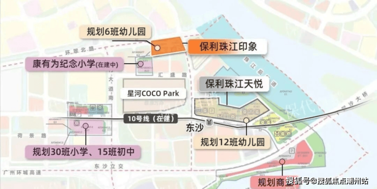 交通配套项目距离地铁10号线东沙站大概700米,预计25年年底开通,1站就到对岸海珠西4站中大,6站滨江东,零换乘直达珠江新城。1.3公里是已开通的地铁11号线环线。1公里内有公交站如健康港总站、沙洛市场等。规划水上巴士及港湾码头(计划3年内完工)。自驾邻近白鹅潭大道,外通东沙石岗隧道,快速接驳环城高速、东新高速。