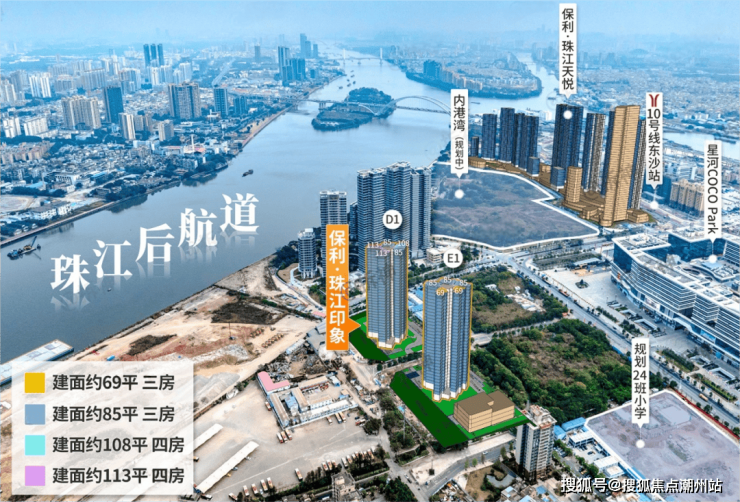 保利将推出滨江小户型,就在荔湾东沙,南地块是保利珠江天悦,北地块是保利珠江印象。保利珠江印象项目位于广州市千亿打造的后航道沿江经济带荔湾区东沙板块,江景稀缺小户型。从规划图看610地块,计容建面约12327㎡,平均一层建面约385㎡,户均建面不到80方。617地块,计容建面约15684㎡,平均一层建面约490㎡,户均建面不到100方。相比天悦,珠江印象主打是小户型,项目体量较小,两栋楼32层高的住宅和一所6班幼儿园。