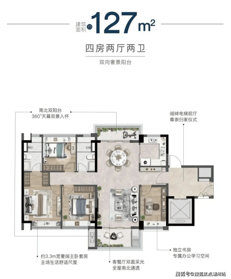 106㎡四房:四开间朝南,自带入户花园,主卧独立套房设计