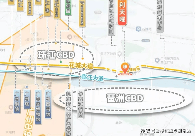 交通方面;地块位于规划花城大道南侧,紧邻华南快速干线、黄埔大道中、临江大道及科韵路等主要交通干道,这也是天河比较难得的靠近地铁站的盘