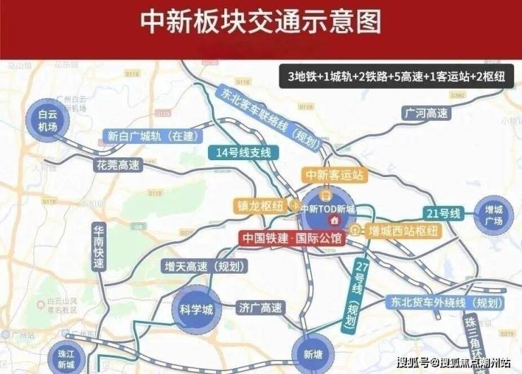交通配套项目临近地铁21号线中新站大约2.2公里,坑贝站大约1.5公里,不算地铁盘,建议骑个电动车接驳到地铁口,可坐一个站到镇龙站换快线,1站黄埔、3站天河。