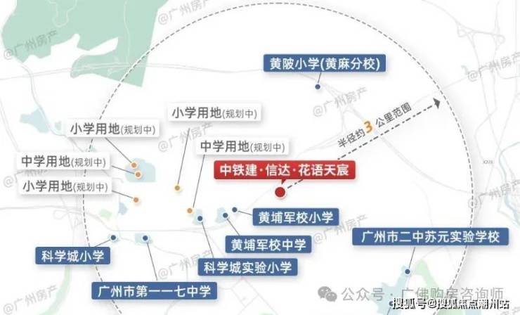 黄埔军校中小学直线距离800米虽是利好,但摇号制仍存变数,中学需依赖117中学等周边资源。