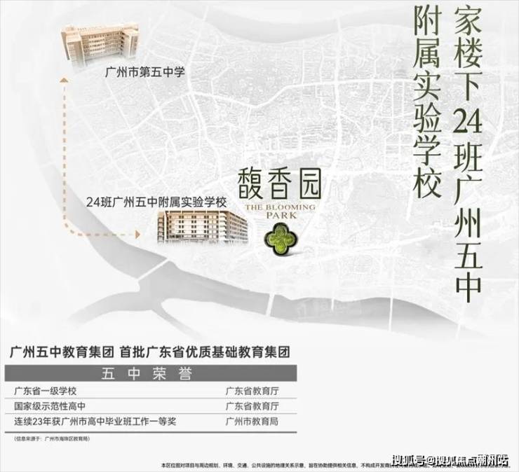 项目配建24班广州五中附属实验学校(小学)● 广州五中:广东省首批国家级示范高中,广州市唯一一所连续三年高中录取分数线位列第一梯队线以上的区属学校。在海珠,每10个考上重点大学的学生中,有7个来自五中。