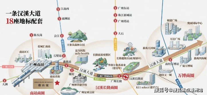 项目位于南站商圈,南站黄金8km,18座地标配套广州南站串联万博、长隆两大板块,以“超级枢纽+超级商圈”模式平移都市中心,南站8km范围聚集番禺70%的经济总量、70%的常住人口,拥有前沿的产业体系+集中的商业配套+宜居的生态资源+高效的通勤速度,是番禺最适合生活居住的组团,打造广州不可复制的“黄金动脉”。