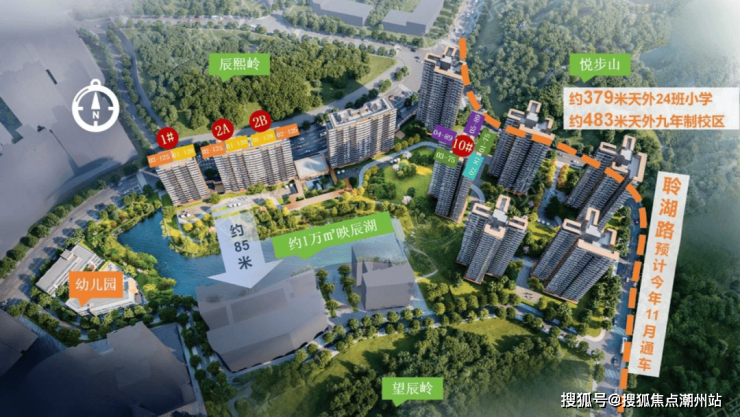 临湖栖居 自在所得,楼下约40米映辰湖,1KM内坐拥太阳湖、月亮湖5.3万㎡浩渺水域,漫步1.9公里湖岸线,三山环伺间。