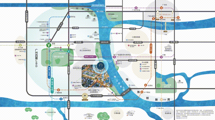 交通配套;广州幸福湾雄踞粤港澳大湾区的核心位置,坐拥“6条主干道+3条地铁环绕+3条过江隧道+1公交总站+1港湾码头”配套优势,距离广州南站仅8分钟车程,45分钟直达白云国际机场,交通便捷,配套齐全