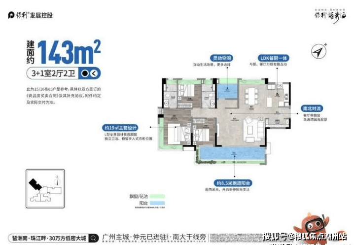 广州保利领秀海是由央企保利打造的滨海大城,项目位于南大干线旁,接驳新化快速,轻松畅达琶洲;规划双地铁双城轨,3站琶洲、4站广州南,交通便捷;同时紧邻珠江入海口狮子洋畔,享一线270˚环幕海景。预计首推约74-140三四房,创新设计,全南向设计,大面宽阔楼距,景观资源优越,是继琶洲天悦之后又一江岸新标杆。保利领秀海占地面积约为14.7万平,总建面约30万平,足足规划了20栋19-26层高的住宅和4处商业,是一个大型宜居型的社区。