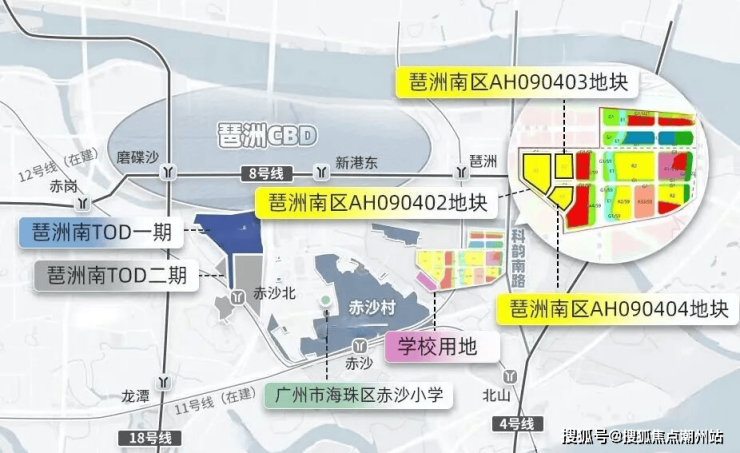 项目位于海珠区琶洲南TOD项目东侧,就隔着一个大围公园,向北跨过黄埔涌。 它乃广州大CBD的铁三角之一,与珠江新城,金融城和鱼珠隔江相望; 而且海珠本身就是核心区,学校,商业,文娱各项配套齐全且成熟,不存在几十公里造“飞地”的情况。