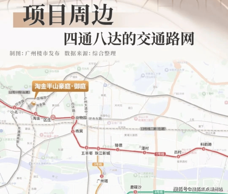 项目交通配套:项目距离地铁5号线淘金站仅约600米,周边还有12号线、13号线2期在建中。项目自驾背靠环市路、恒福路、淘金路、内环路项目东侧设有淘金北站公交站公交线路10、245 247、546等。