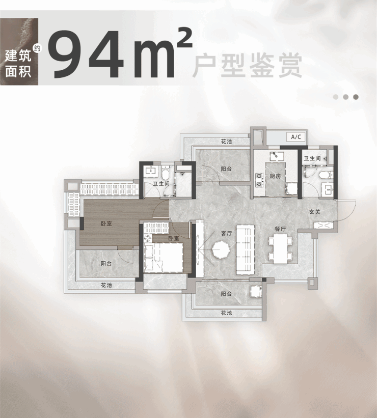 90-94㎡三房:6米宽厅+20㎡客厅,飘窗延展成“观景台”,主卧24㎡堪比改善型配置。