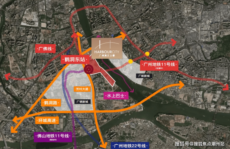 交通配套2地铁+1轻轨+水上巴士为一体的TOD立体交通中心,广州11号线以及佛山11号线鹤洞东站双地铁上盖,3横2纵大路网+公交站场+水上巴士,集水、陆、轨等多维交通方式于一体,半小时城央生活圈,1小时湾区生活圈。11号线,老城区换乘之王,可换乘13条地铁线,途经天河、白云、越秀、荔湾和海珠。