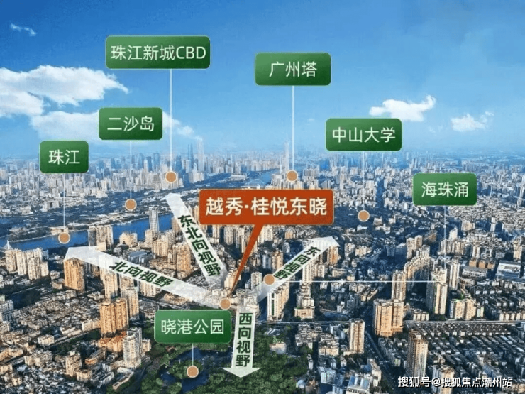 越秀桂悦东晓项目位于海珠西海印桥南晓港板块,靠近晓港公园和晓港地铁站,作为“广府系”第三子,越秀·桂悦东晓在地段、景观和产品上,都具有很鲜明的本土特色。桂悦东晓的布局大体上由北至南“一字型”排开,全部户型都是东南或西南朝向,西南侧直面约17万平的晓港公园,东侧望百年学府中大和城市封面广州塔,北望珠江新城天际线和二沙岛,每一个角度,都有不一样的风景。