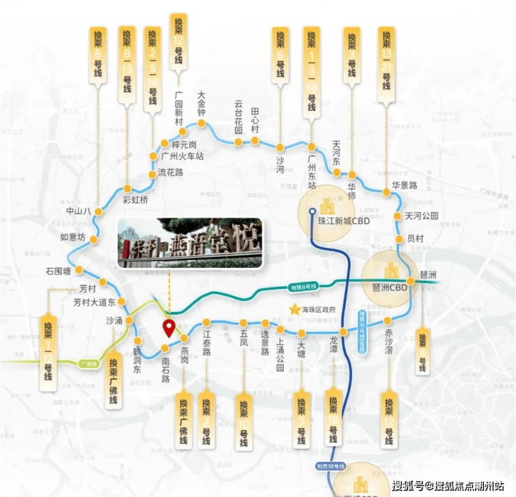交通:保利燕语堂悦门口便是广佛线+11号线(已开通)燕岗站。通过广佛线转3号线,7站到珠城,不到三根烟时间。对琶洲、珠城上班的朋友,很友好。海珠最成熟的商业,基本都在这里了。