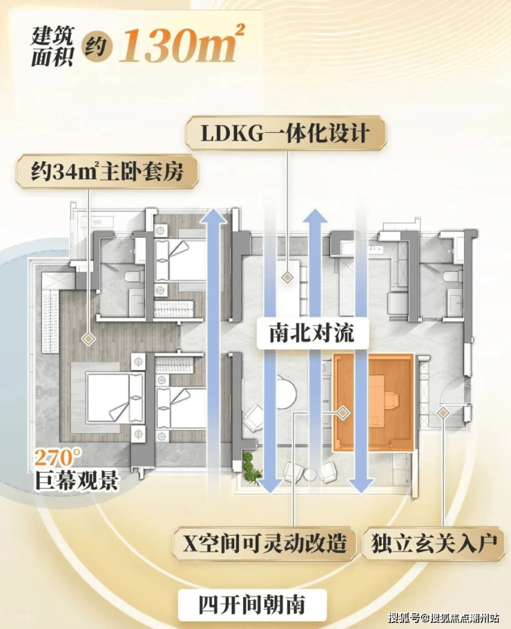 社交阔厅|半开放式中西厨,LDKG一体化布局从容有序
