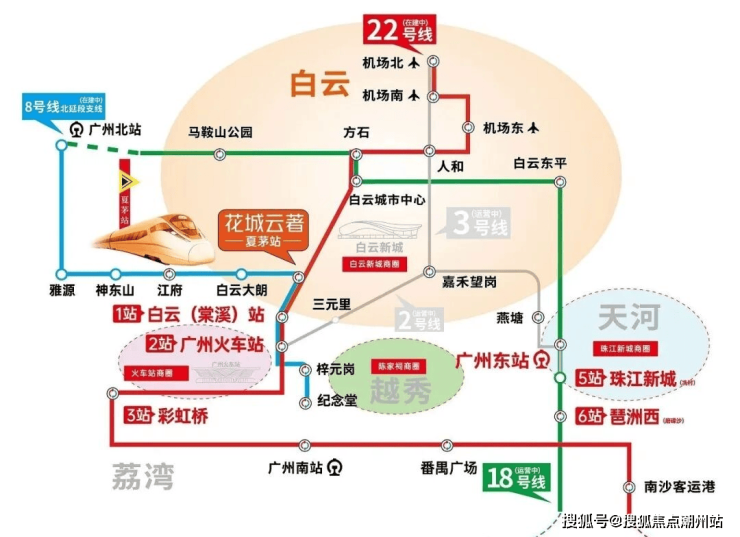 交通路网四通八达,距离白云新城约3.5公里,广州火车站9公里,珠江新城18公里,到广州白云机场也只是20公里,30分钟车程即可到达广州中心各大生活圈以及交通枢纽。出门机场路、华南快速、机场高速,直抵白云新城、荔湾、越秀、机场。