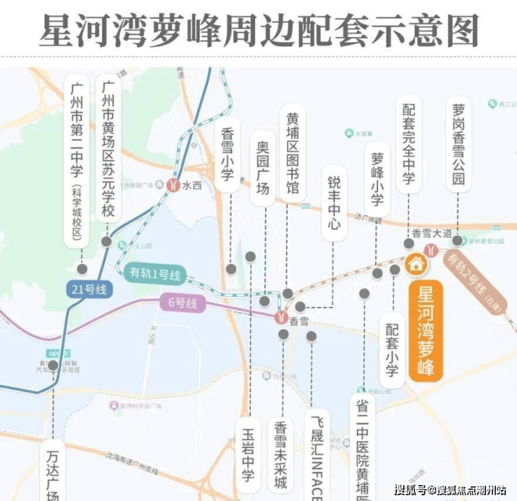 地铁6号线香雪站,2站到苏元站,换乘地铁21号线,3站即达天河;规划的还有23号线香雪站,以及双有轨电车1号线、2号线香雪大道站 / 玉岩站,快速通达广州全城;