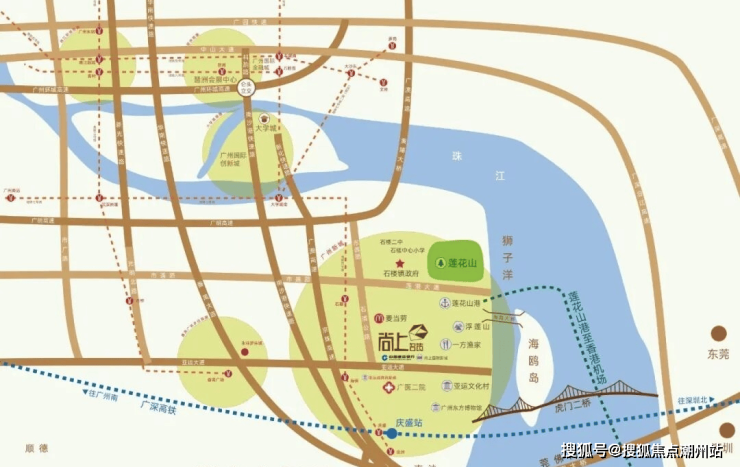 交通配套地铁:紧邻地铁四号线海傍站,35分钟直达天河圈及广州主要城区,连通未来三号线延长线、十二号线。 高速路:京珠高速、南沙快速40分钟畅达深圳、东莞、中山、佛山等珠三角重要城市,政府斥巨资打造亚运大道,瞬间即达番禺中心市桥。 客运港:莲花山客运港1.5小时畅达香港。