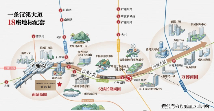 生活配套:沿着汉溪大道,18座地标级配套群星闪耀;容纳约7.5万人,全国最大的足球场今年兑现后,不管是看演场会、看比赛,还是运动踢球、专业集训,都能在家门口解决。从南站到足球场,再到长隆万博,一站式的枢纽、文体文旅、商圈等资源紧密咬合,自由流动。