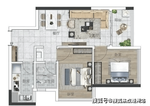 产品二:64㎡ 两房两厅一卫