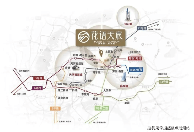 交通配套:虽然楼盘距离地铁站稍远,但区域交通条件完善,能够快速接驳全城。轨道方面,项目周边有地铁6号线与21号线,同时有轨电车1号线,未来出行便利度进一步提升。公路方面,华南快速、广州绕城高速、京港澳高速以及广汕公路等多条快速路网交织,形成纵横交错的交通体系。无论是前往天河、珠江新城,还是通往科学城与东部新城,均能实现快速通达,真正做到出行自由无忧。