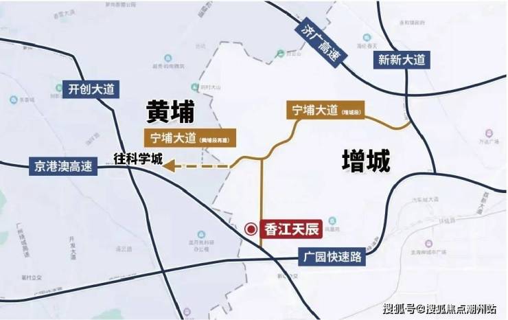 香江天辰交通方面自驾比较方便,可以通过广深高速、广园快速、广深大道,快速通达黄埔、科学城、天河等中心区,特别对科学城白领来讲,出门不远就是已经通车的宁埔大道,双向六车道为你的畅通出行保驾护航。