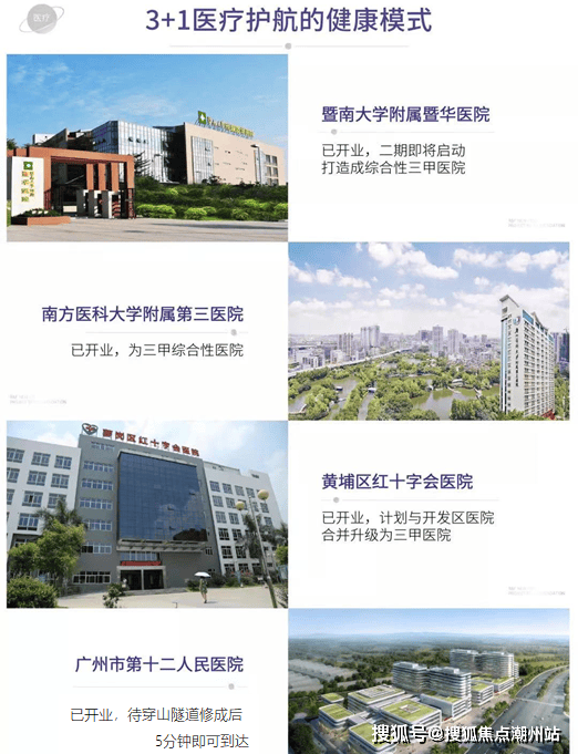 三甲医院 有广州市第十二人民医院黄埔新院,已于2024年6月18日正式启用,待丹水坑穿山隧道修成后,5分钟即可到达。其他医疗配套有暨南大学附属暨华医院(东侧)+三甲南方医科大学附属第三医院(西侧)+黄埔区红十字会医院(南侧)。