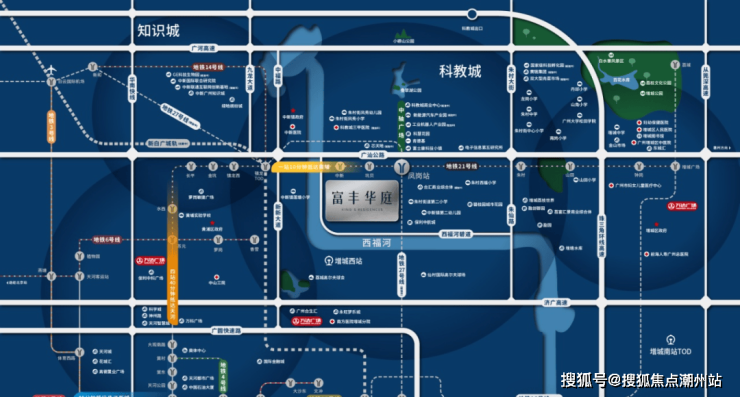 广州东部增城红盘富丰华庭,科教城核心21号线快线上盖,1站黄埔,4站天河; 新加坡滨河国际社区,89-118㎡超高使用率,南向一线滨河景观,享奢阔瞰景视野,实现“归家即度假”的生活体验。项目位于广州市增城区朱村街,广州地铁21号线凤岗站A出口附近;坐落于广州科教城(万亿级湾区科创走廊核芯的千亿科教城),投资1800亿,规划打造为国际一流教育聚集区和职业教育高地。
