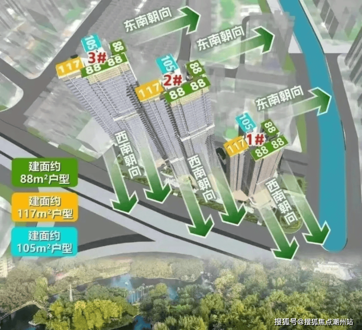 全新3栋已上新,主推建面约88-105-117㎡四房,88平三房共有3条梯腿,有东南向和西南向,105平和117平各有1条梯腿,105为东南,117是西南。