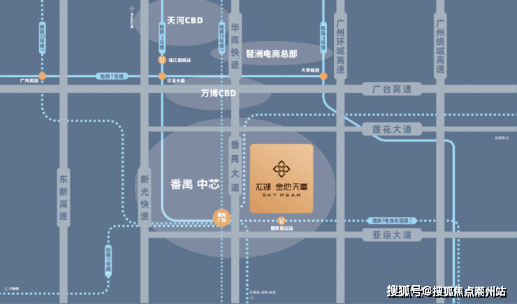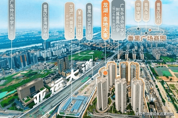 龙湖金地天峯,2020年12月龙湖以21127元/㎡夺得的番禺客运站地块开发项目。这里地铁1站距离就是3地铁交汇的番禺广场,地段杠杠滴。该地块同时也在建设地铁3号线东延段番禺客运站站,并配套约8万㎡天街、6万㎡底商,以及广外附小24班小学、6班幼儿园、肉菜市场等,总体量45万㎡左右。其中,龙湖天街是龙湖旗下的主力商业地产品牌,是一个集购物、餐饮、休闲、娱乐等多业态的一站式商业综合体。因此这将是继品秀星瀚之后,番禺的又一个TOD大盘,项目包含8栋33-43层的高层住宅,总户数约1555户,产品包含89-142㎡三至五房。