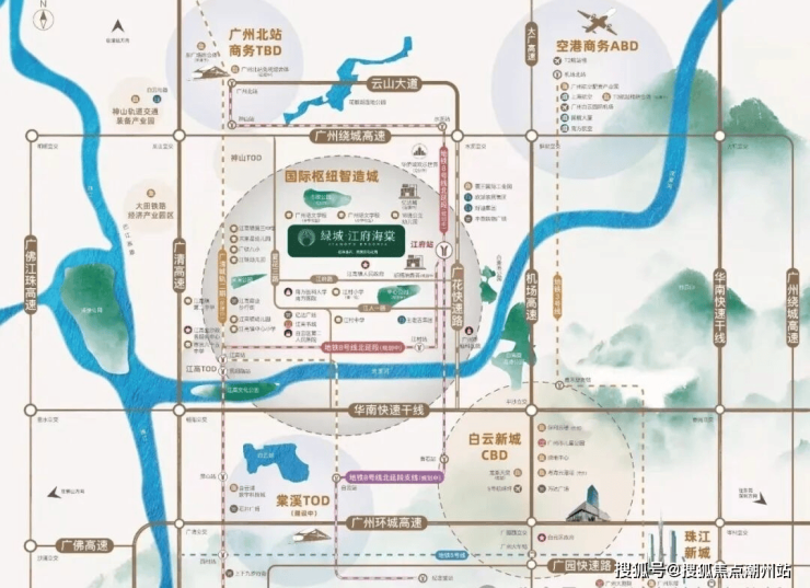 项目交通配套:项目距离地铁8号线北延段和北延段支线江府站800米左右,目前工程进度23%,未来坐地铁6站珠江新城CBD,10站北京路商圈、直达广州市政府。项目自驾有双向十车道广花快速路,无红绿灯,10min直达白云新城、3min高速口上环城高速、30min到珠江新城、2小时通达大湾区各大城市。