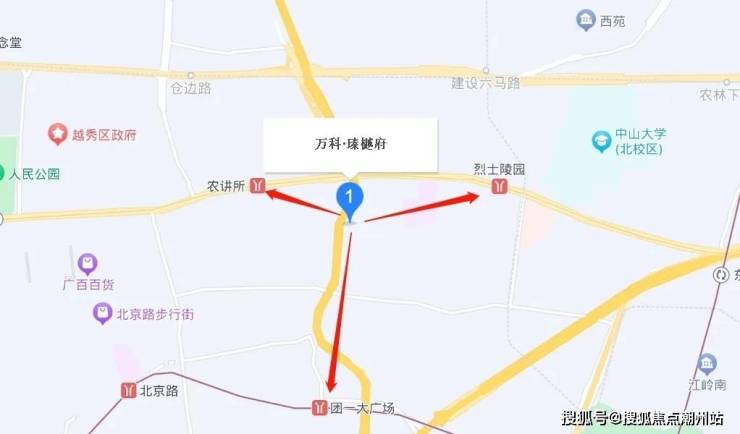 万科·瑧樾府位于越秀老城区腹地,位于中山三路以南,东濠涌的东侧。项目距地铁1号线农讲所约400米,6号线团一大广场站约700米,交通还算便利。由于位于老城区,周边生活气息也较为浓厚。