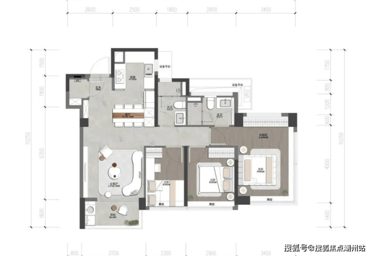 •可变空间:根据不同需求进行灵活调整:厨房打开形成中西厨+岛台空间;次卧打开,形成横厅X空间。