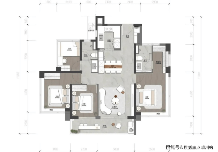 •LDKG一体化设计:餐厨、客厅、阳台,加上X空间全部打开,可融合为一个大尺度空间;