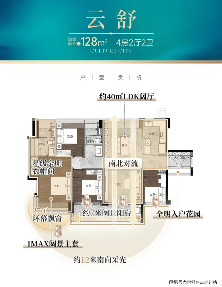 而建面约128㎡的四房,则做到约16米南向采光、南北对流,且拥有一个约40㎡LDK阔厅,碾压市场同面积产品。