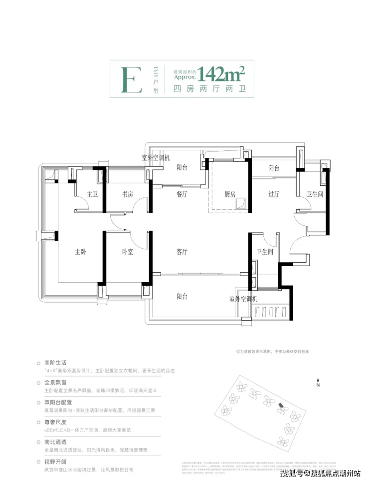 142平双套间四房三卫,项目使用率超100%,所有户型均为南向!