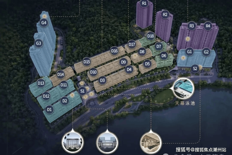 项目楼栋分布和户型:项目除了4栋R1-R4栋政府配建房以外,对外销售的产品涵盖叠墅、小高层和高层,户型建面均为143㎡。中间一线临湖区由18栋4-6层的叠墅组成一梯一户,合计188套;右侧为2栋9层高的小洋房,两梯两户,都是独门独户。同时还有4栋保障性住房,左边是2栋16-17层的小高层,两梯四户。