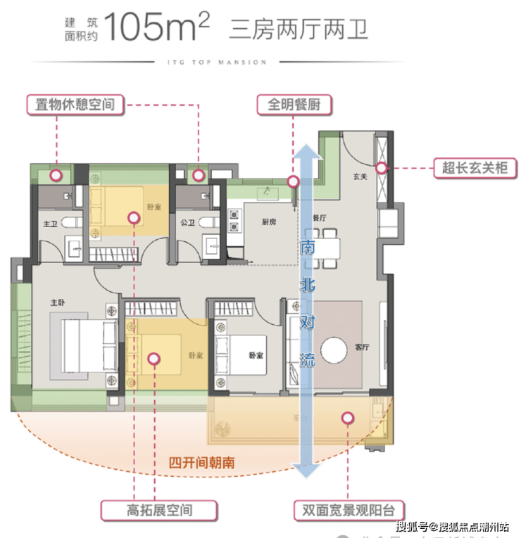 105㎡ 四房二卫户型