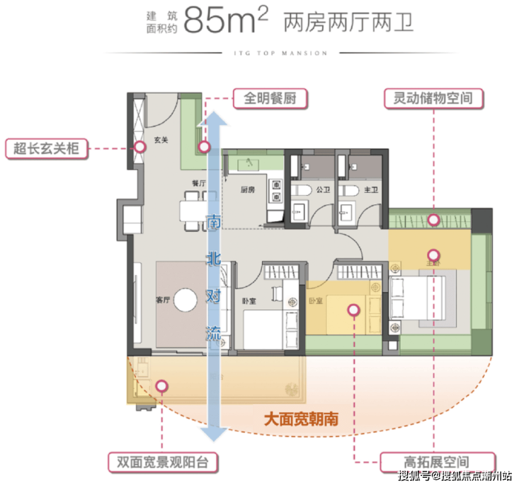 85㎡ 三房两卫户型