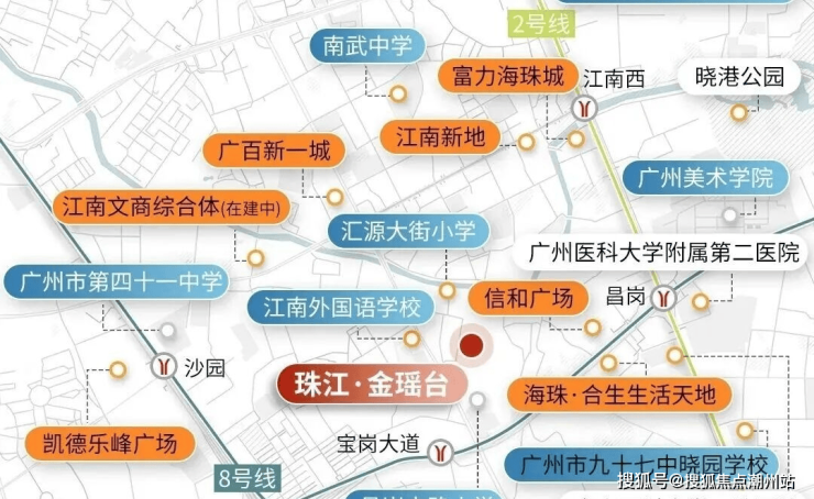 项目周边有富力海珠城、江南新地、江南西名店城、万国奥特莱斯、广百广场、乐峰广场和海珠新天地等商业体。几百米外还有以平价著称的沙园市场。