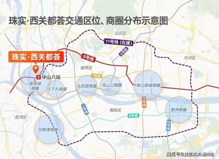 交通配套全市重点项目中山八站TOD将竣工,与项目直线距离仅约500米,汇聚5+11号线、34条公交线路、社会停车场、商业、写字楼,文化空间等,含金量爆棚。要知道,中山八站手握的2条地铁,可都是广州的主动脉。至于11号线(已开通)则是广州首条环线,串连越秀、荔湾、天河等五区,沿线不仅有白鹅潭、琶洲等全新的经济中心,还有江南西、广州塔等成熟高端商业区域,繁华的片区近在咫尺,项目可谓出生便手握王牌。此外,34条公交路线汇聚中山八交通枢纽,因此,这也成为了公交、地铁、商业于一体的西部“巨无霸”。也就是说,在这个黄金交通圈之上,可以0换乘直达广州六大CBD。自驾通过内环A、B线,无缝衔接中山路、东风路、环市路等城市主干道,根据导航,从项目去白鹅潭、广船、珠城、白云新城、金融城、广州南、老黄埔等重点板块,不堵车情况下,基本在20-40分钟内可以通达。所以项目的交通通达性还是很便捷的。