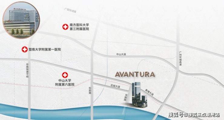 项目周边拥有南方医科大学第三附属医院,中山大学附属第六医院,暨南大学附属第一医院,黄埔区中医院……等多家医院为业主健康保驾护航。