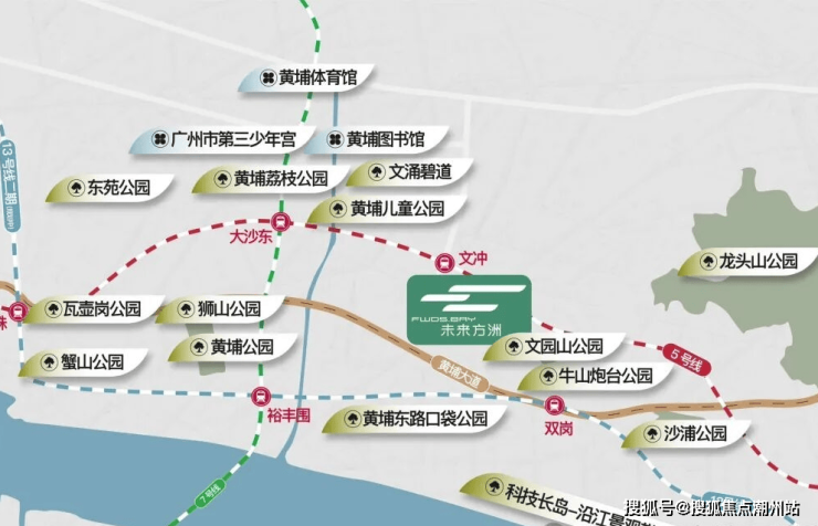 中建未来方舟二期交通配套距离5号线文冲站B出口,步行约200米;13号线双岗站,300米,双地铁加持,3站到鱼珠、6站金融城、9站不换乘直达珠江新城(板块)!半小时通勤3大CBD;黄埔高铁站预计 2026 年动工,直线距离本项目约 2-3 公里,开通后实现大湾区 30 分钟通勤圈(至深圳、珠海等),黄埔大道、临江大道、中山大道等核心主干道,30 分钟贯通珠金琶 CBD 核心。