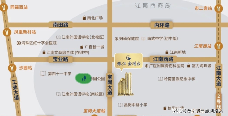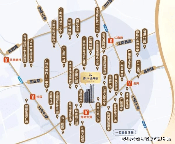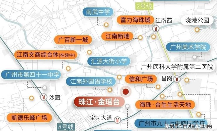 教育资源:项目对面即为广州市江南外国语学校(省一级),周边2公里内昌岗中路小学、广州市第五中学、广州市南武中学等多所省级名校环伺;