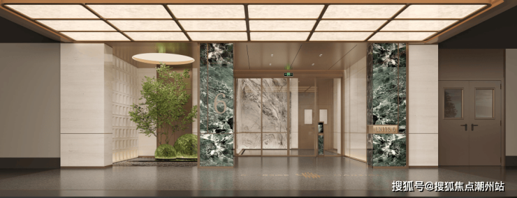 电梯轿厢的细节更见用心:墙面用编织纹理皮革仿板拼接天然大理石,指尖划过能触到细腻肌理。