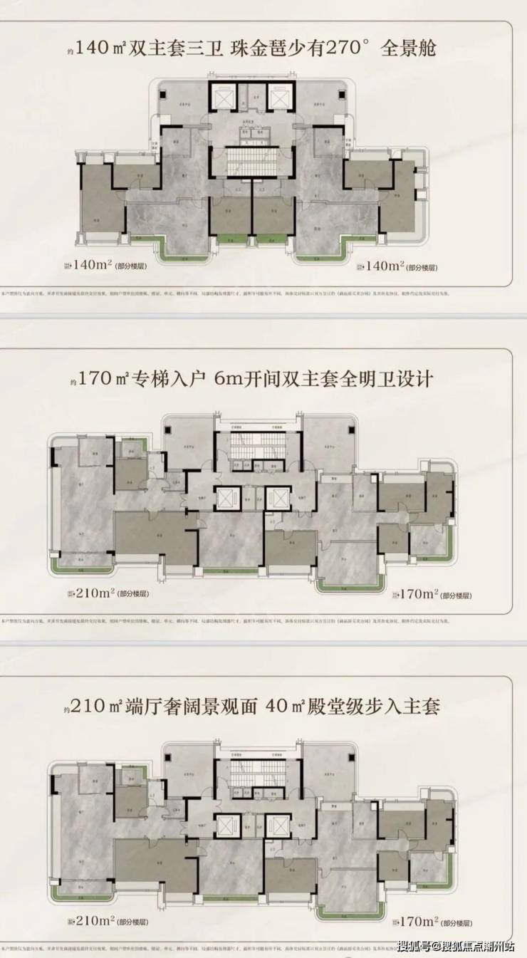 【 产品配置 】北区2T3/3T4塔楼,南区2T2板楼,建面约120-140-170-210㎡云幕平层