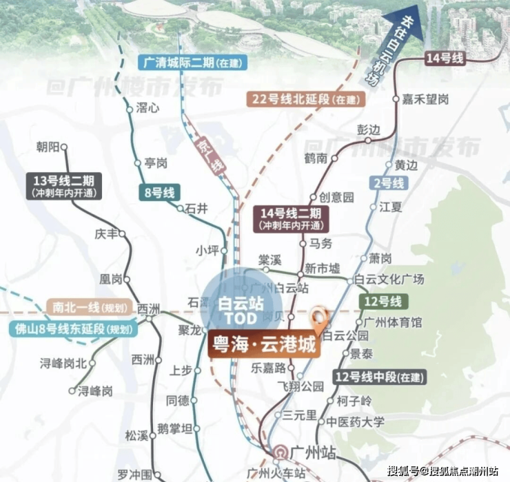 交通配套步行即享双地铁,咫尺世界级TOD,双地铁——链接都市核心经济圈,200米2号线白云公园站,800米地铁12号线,3站即达广州白云站,直接串联白云站TOD六大轨道,畅达广州各个重要节点。4横4纵主干道——串联广州核芯主城区,四横:齐心路、云城南四路、广园快速、环城高速,四纵:机场高速、云城西路、云城东路、白云大道。