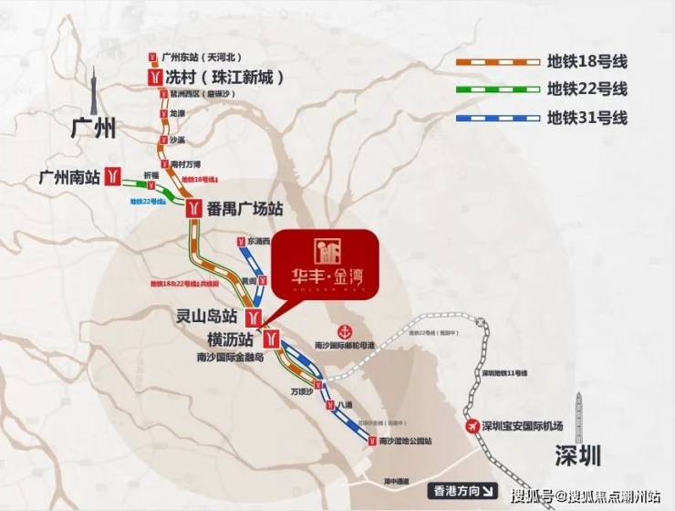 广州南沙华丰金湾坐落于广州南沙区明珠湾灵山岛尖,整体占地面积约3.8万㎡,计容建筑面积约12.7万㎡,华丰金湾所在的灵山岛尖目前在售楼盘不多,之前该板块是南沙楼市热火的“主场”。这是因为,灵山岛作为明珠湾C位,成为了整个南沙金融资源最密集、总部企业最多的区域。目前,灵山岛尖已经汇集了中交汇通中心、星河发展大厦、越秀国际金融中心、广州文投总部大厦、省交通集团等世界500强企业及10多个总部基地。